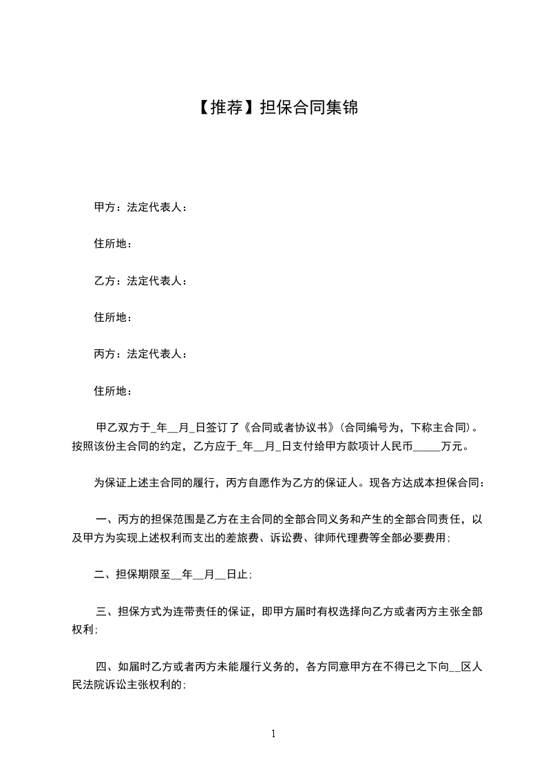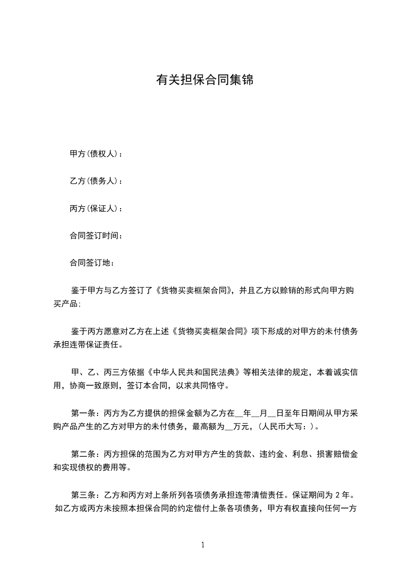 1、丙方向甲方提供反担保,承担连带保证责任。