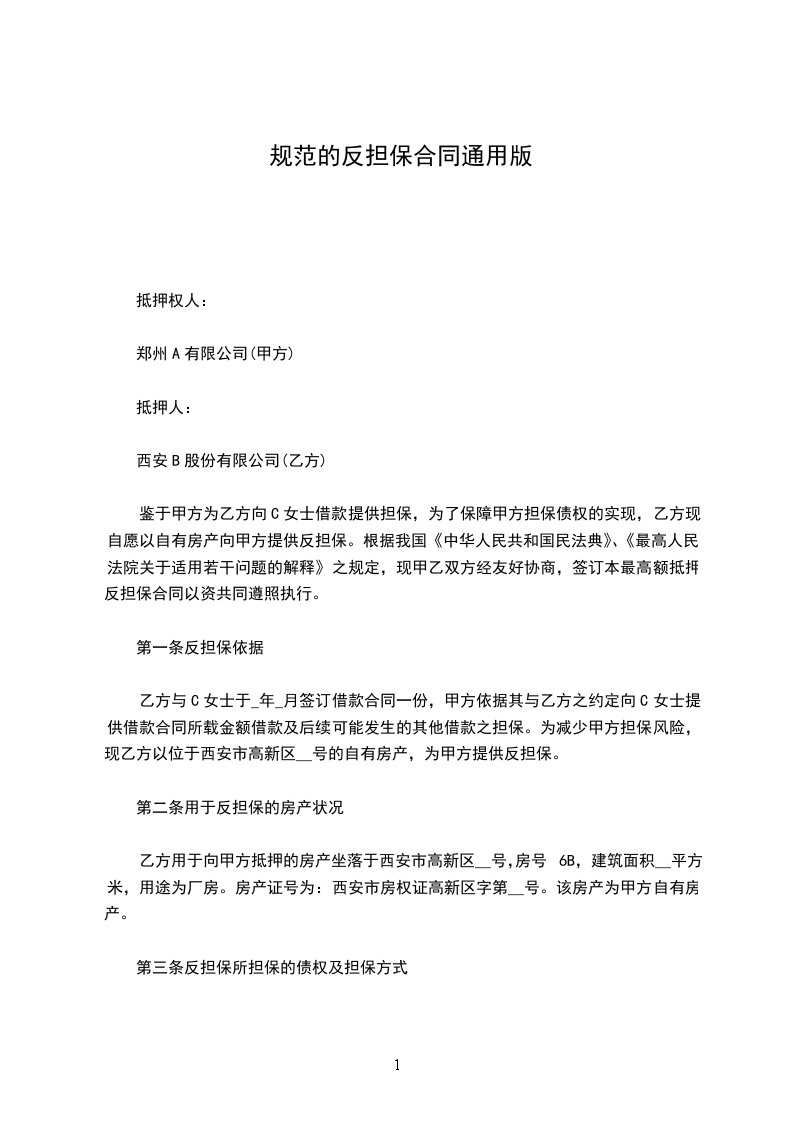 第二条本合同项下抵押财产共作价(大写)_______元整,抵押率为佰分之_______,实际抵押额为_______元整。