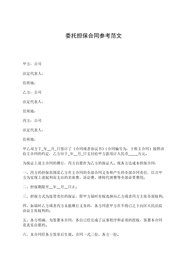 为保证上述主合同的履行,丙方自愿作为乙方的保证人。现各方达成本担保合同: