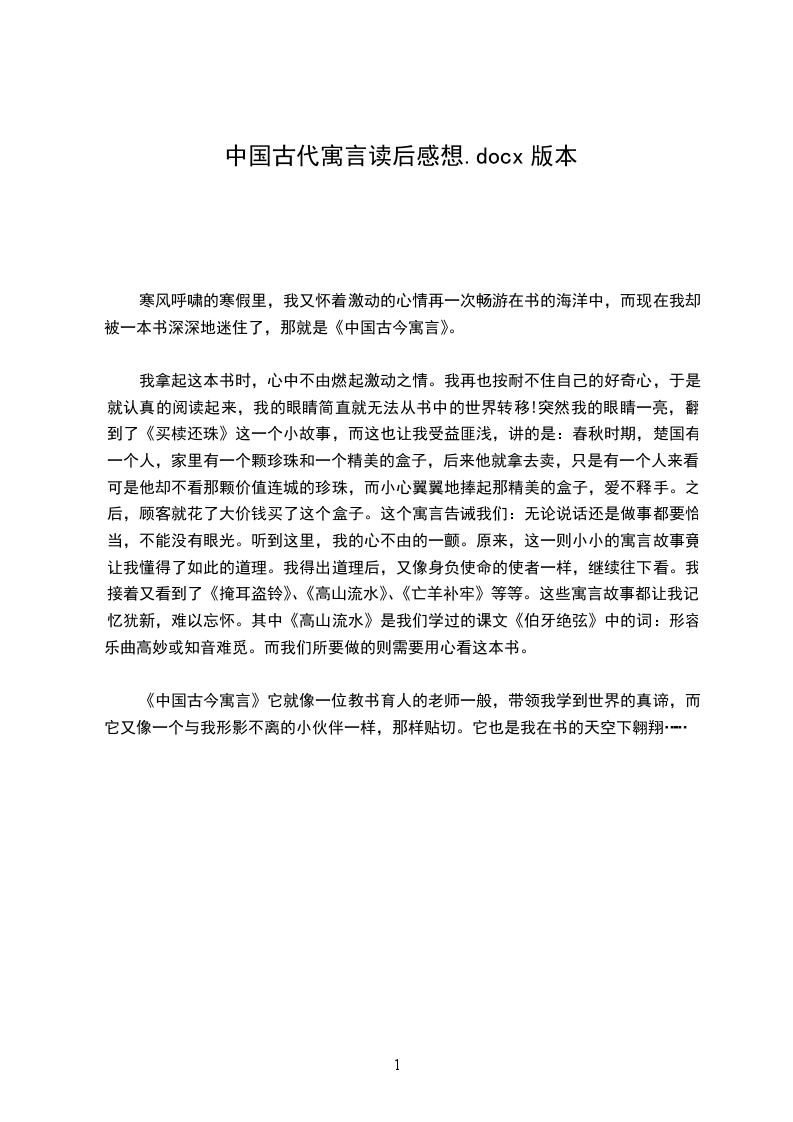 寓言,用比喻性的故事来寄托意味深长的道理,给人以启示的文学体裁,字数不多,但言简意赅。故事的主人公可以是人,也可以是拟人化的动植物或其它事物。也正是此,在简短而精悍。