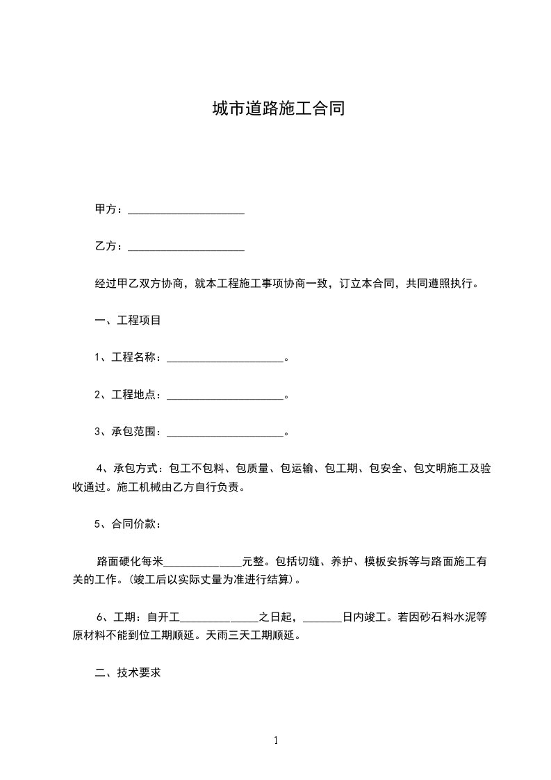 路面硬化每米______________元整。包括切缝、养护、模板安拆等与路面施工有关的工作。(竣工后以实际丈量为准进行结算)。