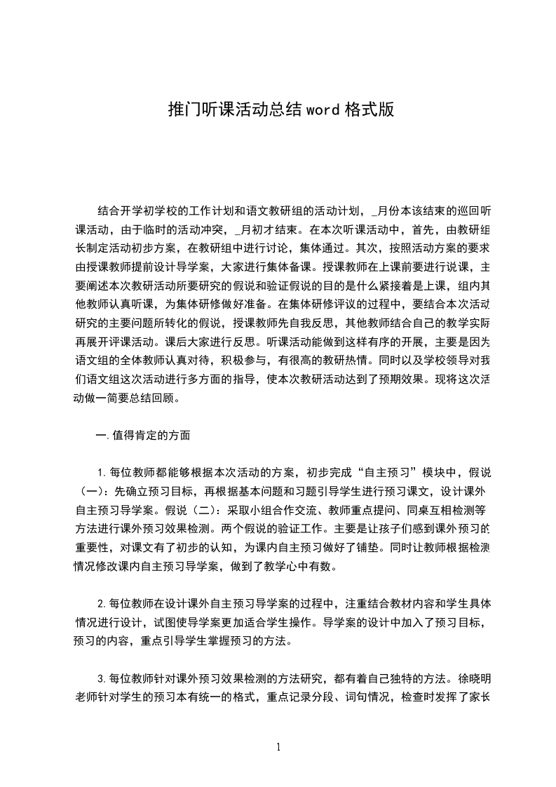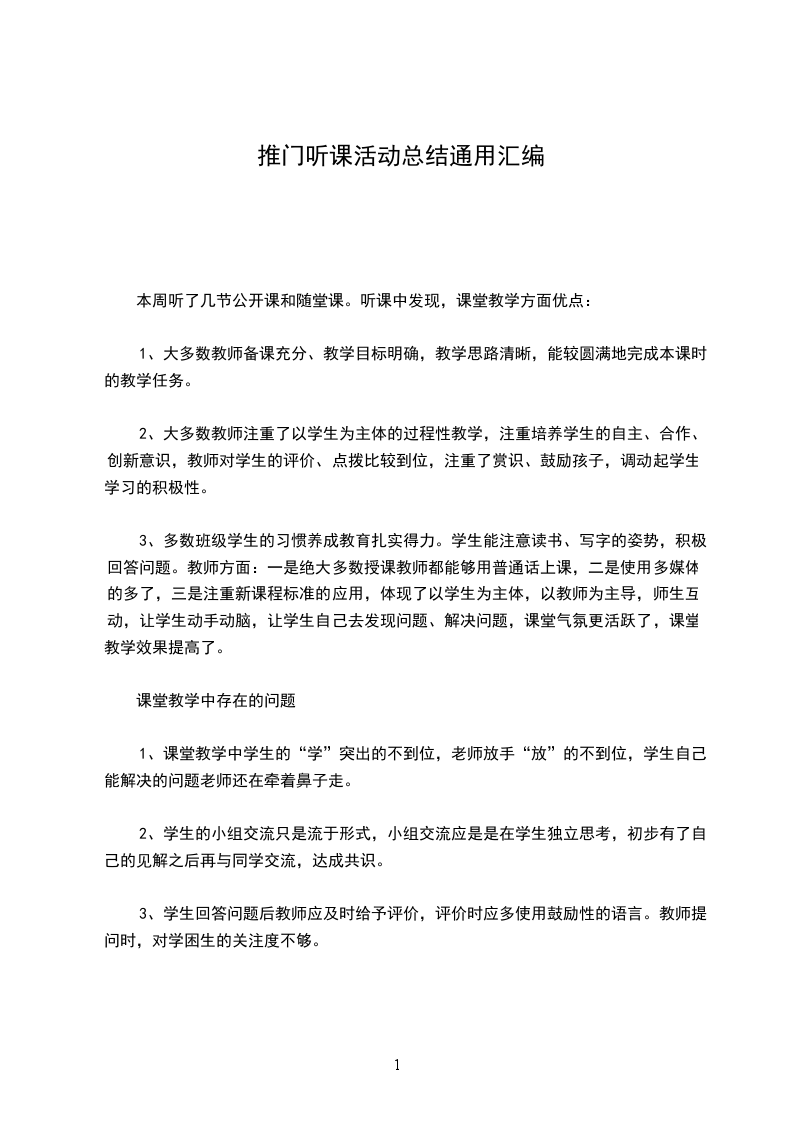 4、有的教师课准备的不够充分,听随堂课是教师上成练习课或讲评课,但整个课堂学生练习并不充分。