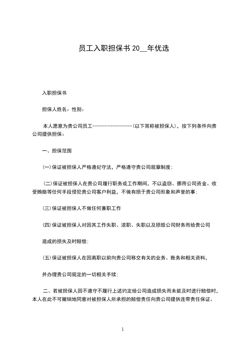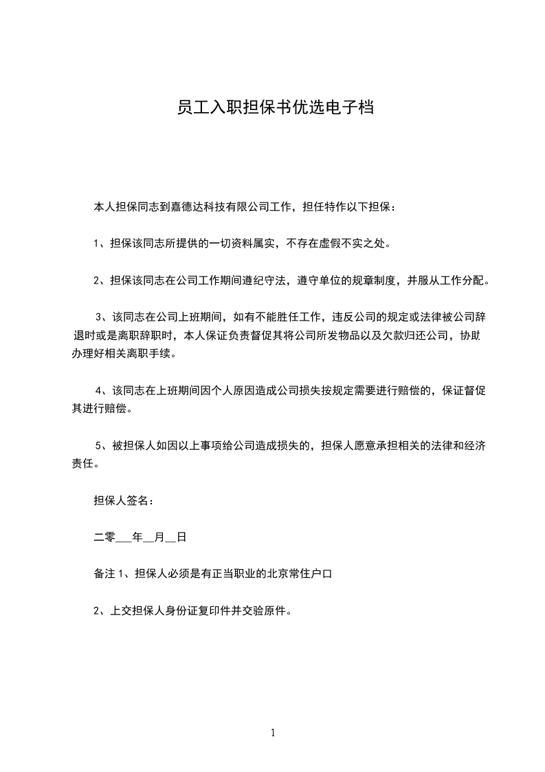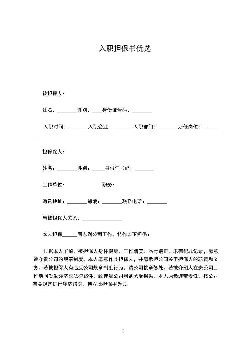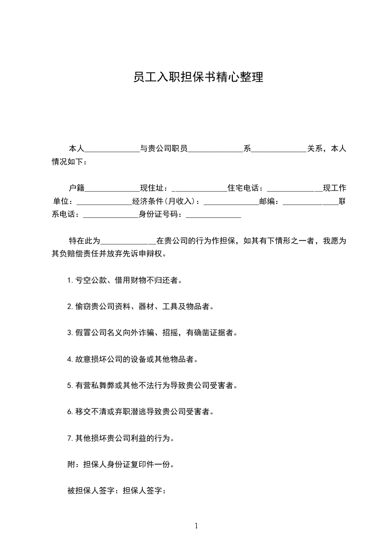 七、本担保书在担保人、被担保人、用人单位签字或盖章后生效,三方各执一份。