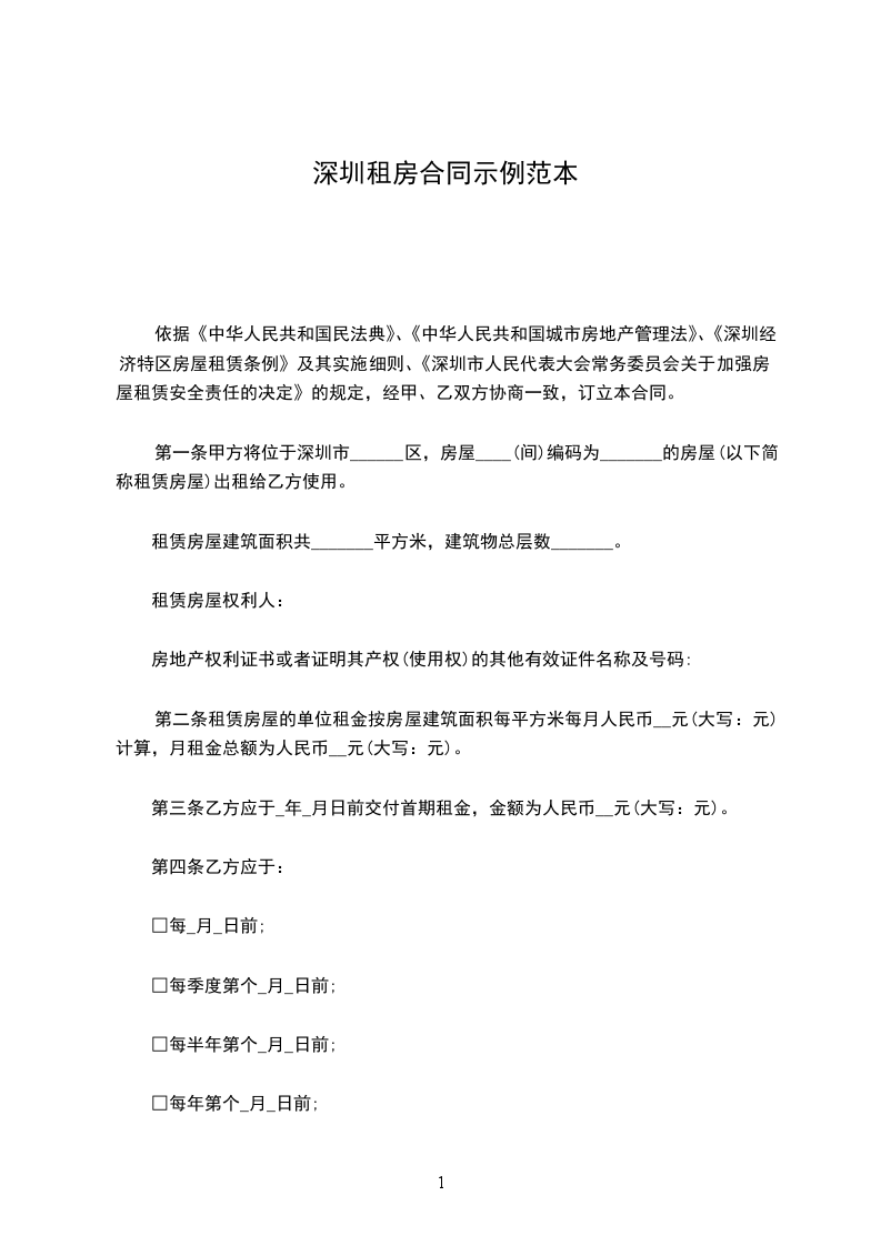 依据《中华人民共和国民法典》、《中华人民共和国城市房地产管理法》、《深圳经济特区房屋租赁条例》及其实施细则、《深圳市人民代表大会常务委员会关于加强房屋租赁安全责任的决定》的规定,经甲、乙双方协商一致,订立本合同。