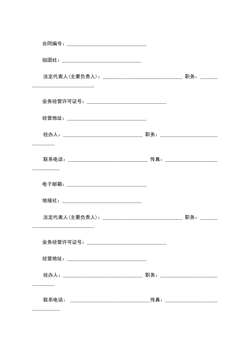 2.未经组团社书面同意,地接社不得以任何方式将组团社组织的旅游者与其他旅游者合并接待,或者转交任何第三方接待;