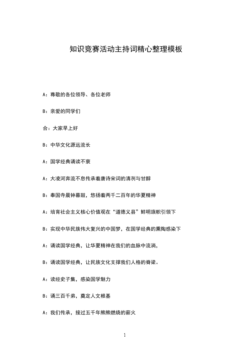 本次竞赛活动共分为四个环节,答题环节参赛队员请尽量用普通话回答,回答问题时,声音要洪亮,答题完毕要说“回答完毕”,答不出的说“不能回答”。竞赛期间,如答案发生争议,由评委席裁决。竞赛程序完成后发生名次并列情况的,由并列队加试一题进行抢答,以此类推,直至决出名次为止。