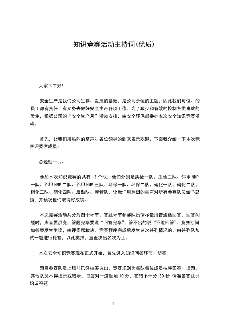 本次安全知识竞赛现在正式开始,首先进入知识问答环节:所答