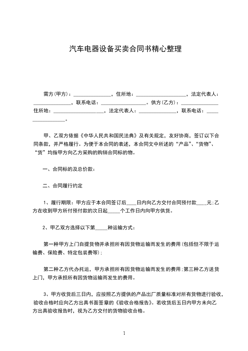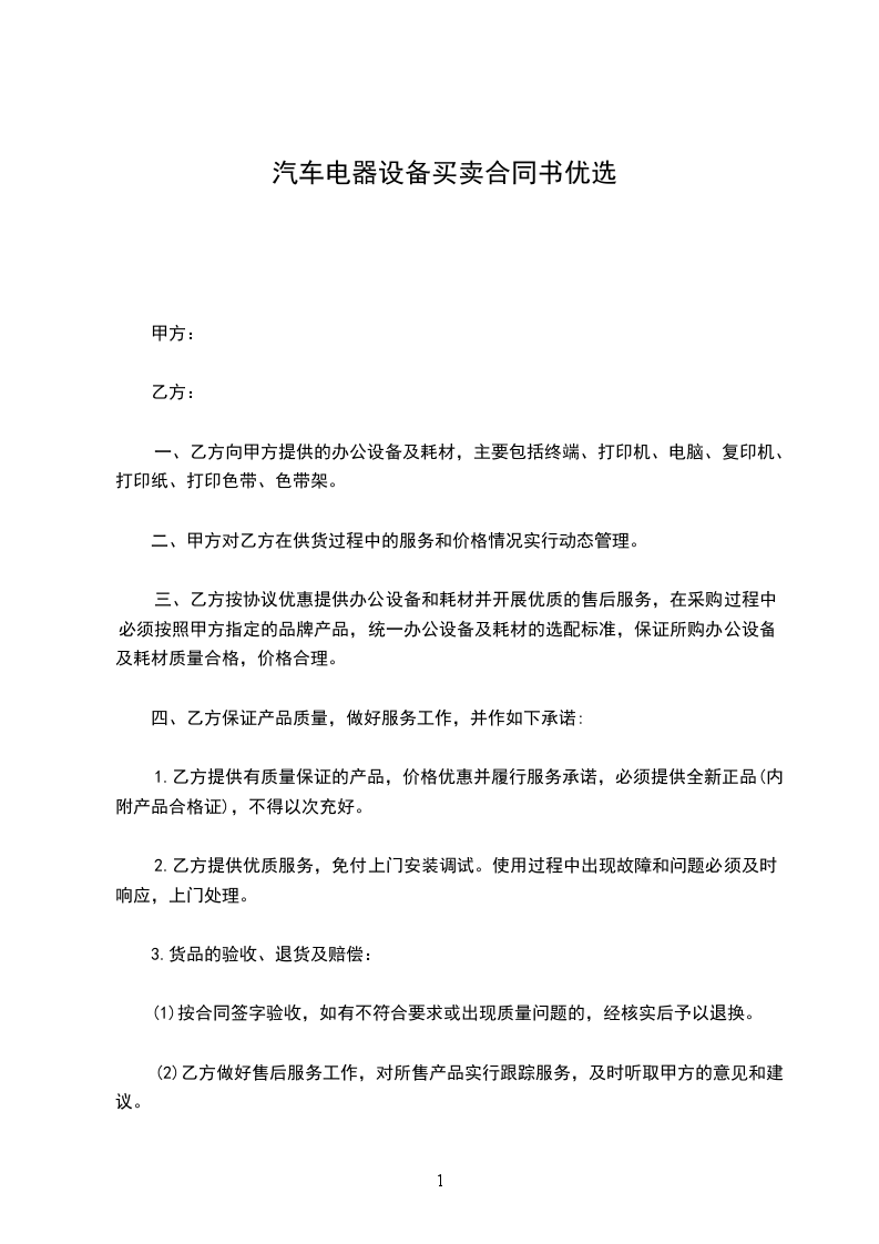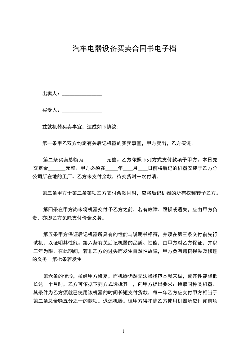 本合同一式份,买卖双方各执__份。均具同等法律效力。本合同自双方签字或盖章之日起生效。