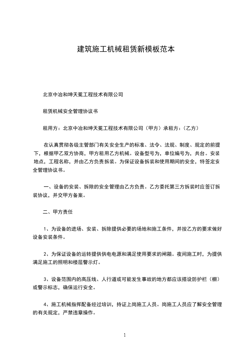 在认真贯彻各级主管部门有关安全生产的标准、法令、法规、制度、规定的前提下,根据甲乙双方协商,甲方租用乙方机械。设备型号为,单位编号为,共台。安装地点,工程名称,并由乙方负责拆装。为保证设备拆装和使用期间的安全,特签定安全管理协议书。