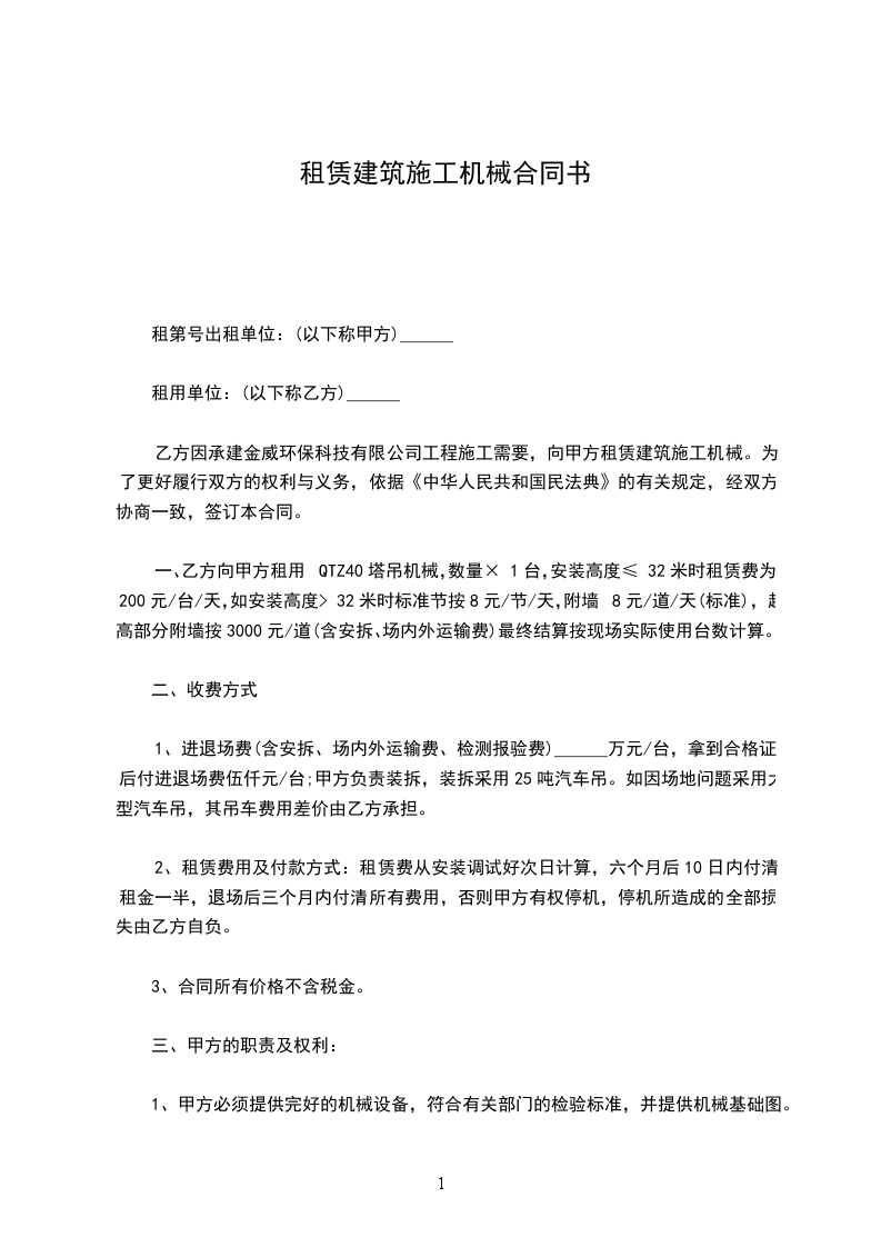 2、施工机械安装完毕,安装单位必须对整机质量及安全装置进行自检,并向甲方出具自检合格证明。向甲方进行书面的安全使用说明,办理验收手续,并填写《北京市起重机械安装统一检查表》。