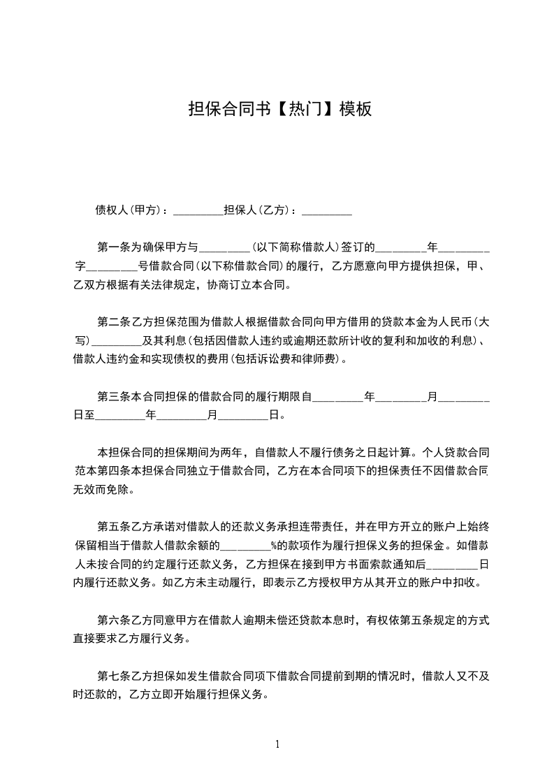 债权人(甲方):_________担保人(乙方):_________
