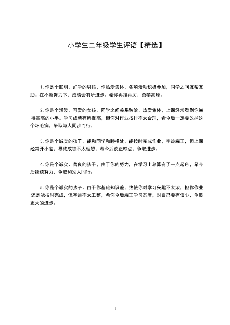 1.你是个聪明,好学的男孩,你热爱集体,各项活动积极参加,同学之间互帮互助。在不断努力下,成绩会有所进步。希你再接再厉,勇攀高峰。