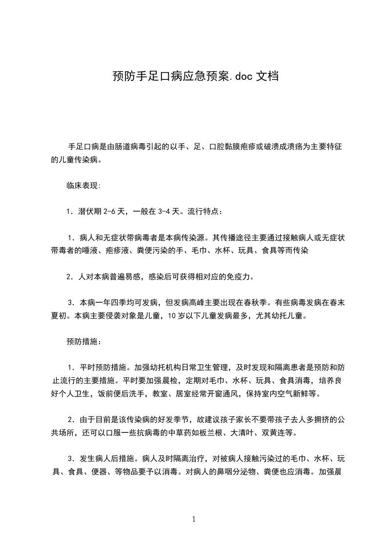 2、召开一次家长会。利用家长会和“致家长的一封信”,向家长讲解了手足口病的发病症状、预防措施、传播途径、病儿的护理等方面的知识,让家长全面了解病理知识,家校配合做好预防工作。并利用图片和故事等形式对学生进行良好的卫生习惯的培养。