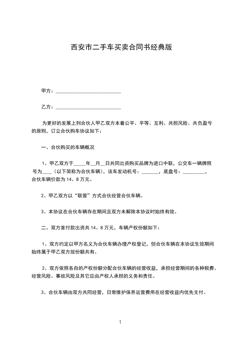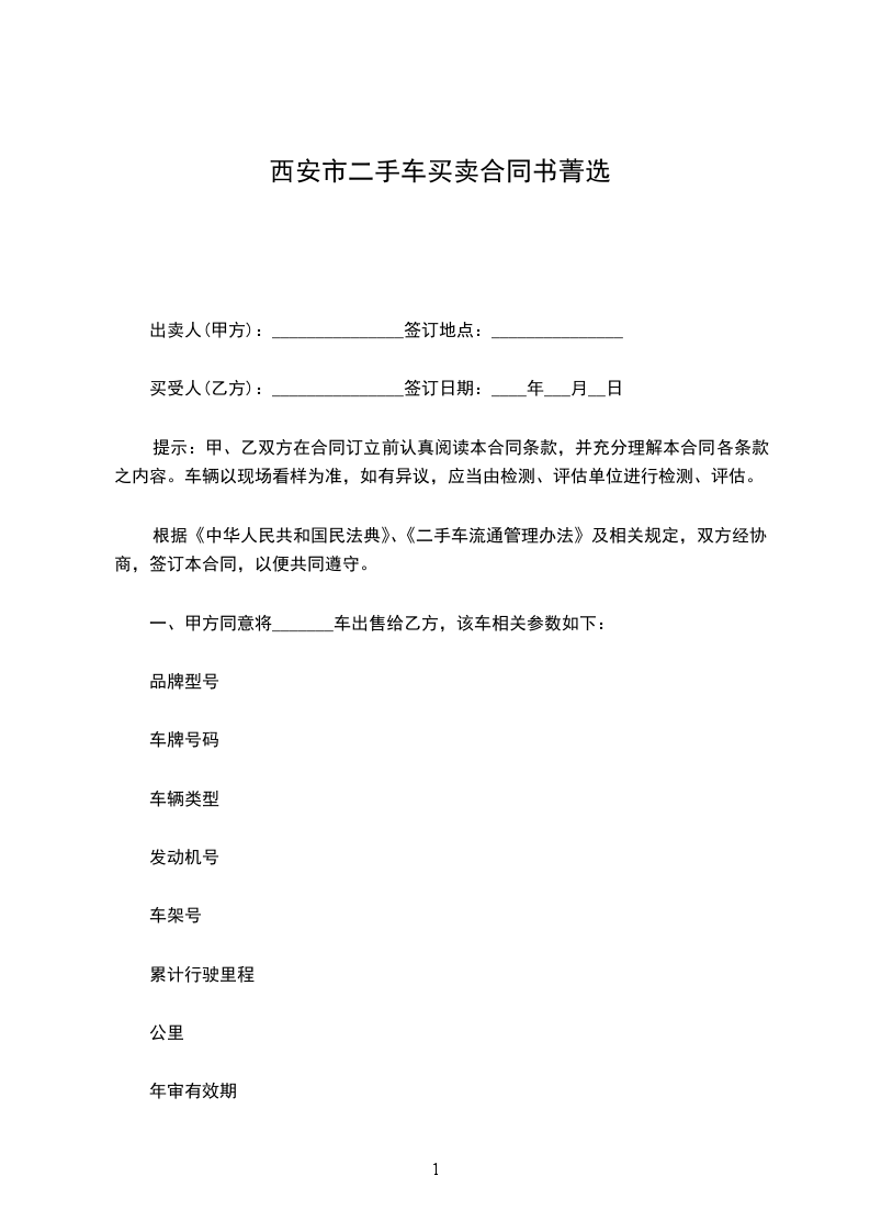 根据《中华人民共和国民法典》、《二手车流通管理办法》及相关规定,双方经协商,签订本合同,以便共同遵守。