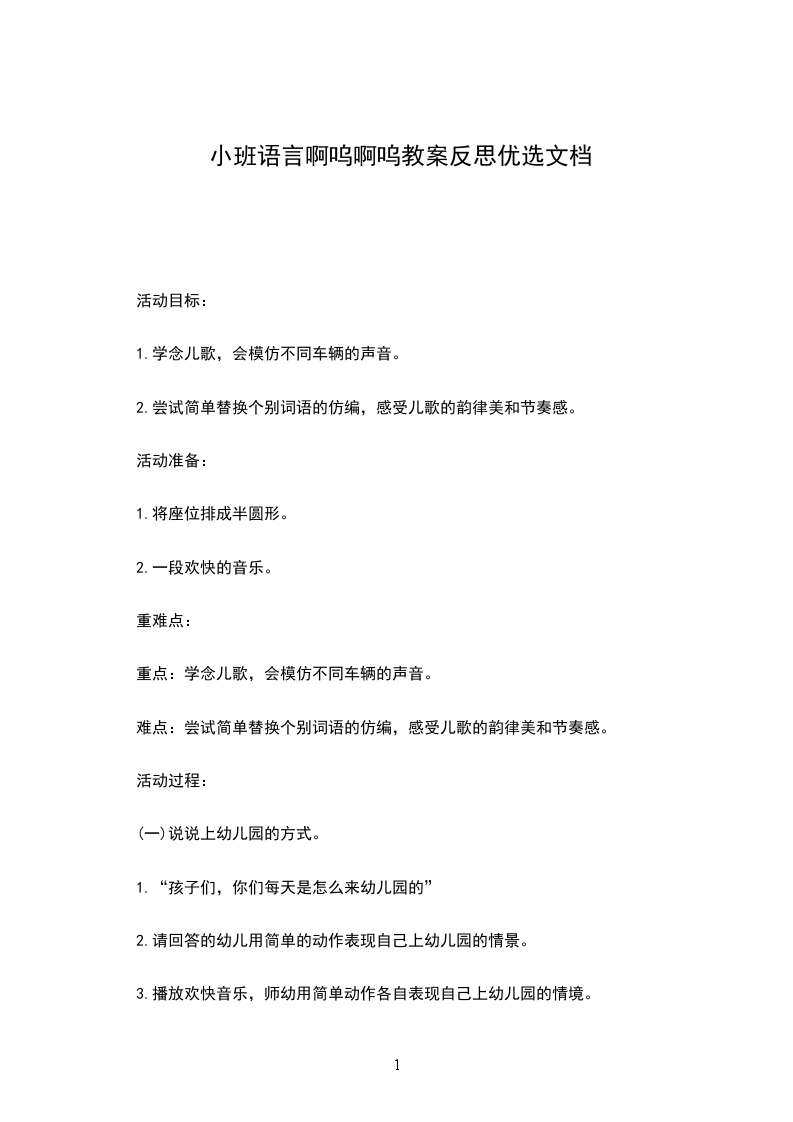 1.学念儿歌,会模仿不同车辆的声音。