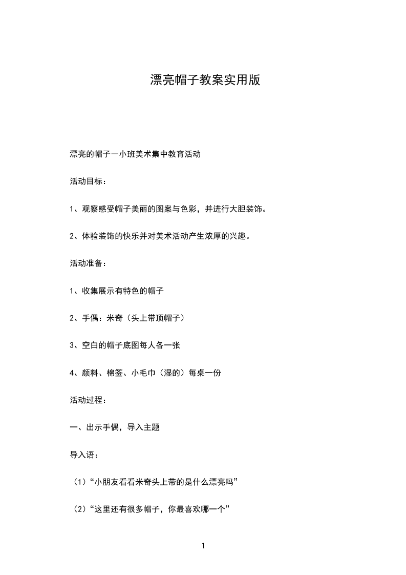 1.欣赏不同的帽子,知道棉帽能保暖。