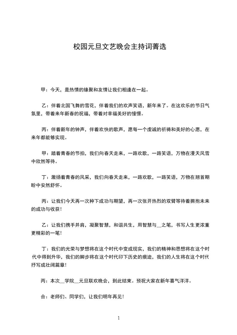 乙:今天的联欢会到此结束,再次祝大家新年快乐,万事如意,心想事成