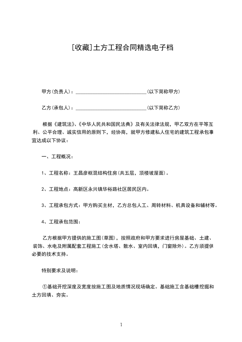 1、工程名称:王昌彦框混结构住房(共五层,顶楼坡屋面)。