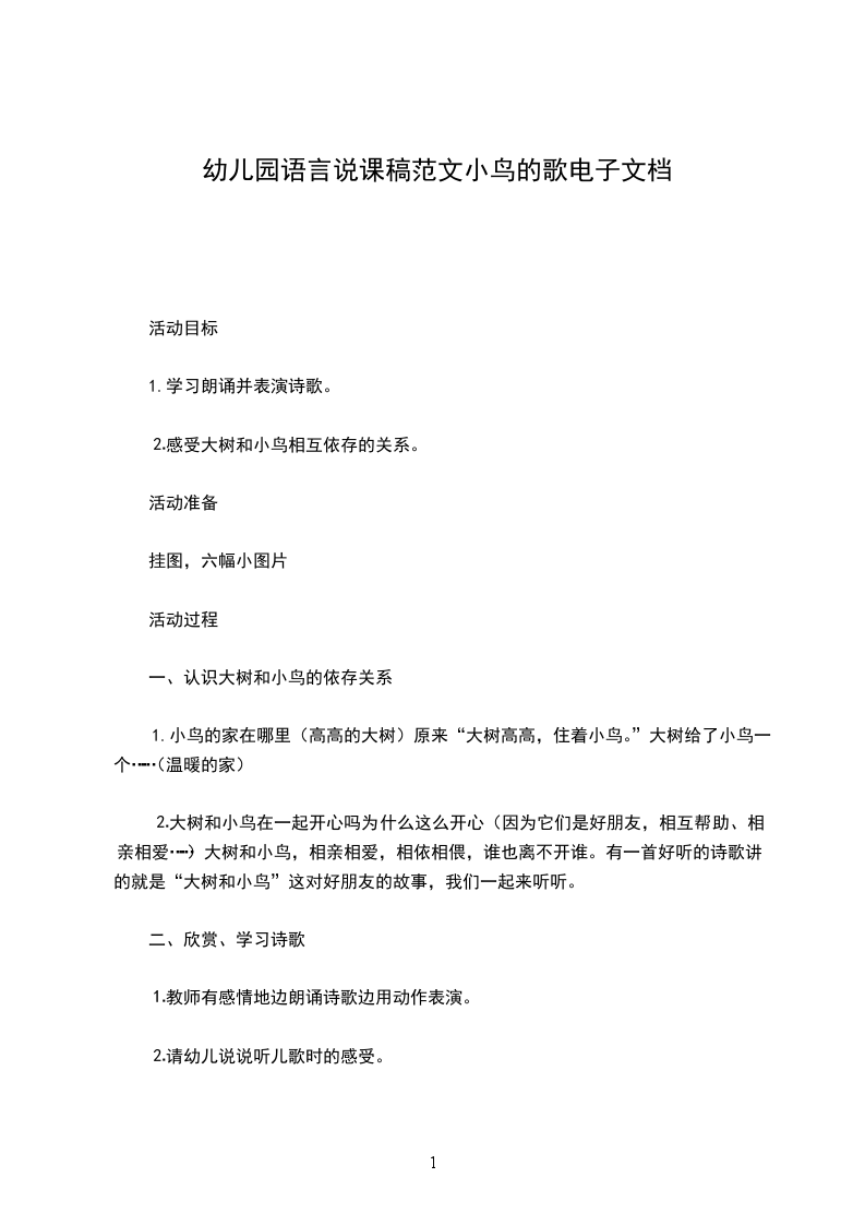 1.小鸟的家在哪里(高高的大树)原来“大树高高,住着小鸟。”大树给了小鸟一个……(温暖的家)