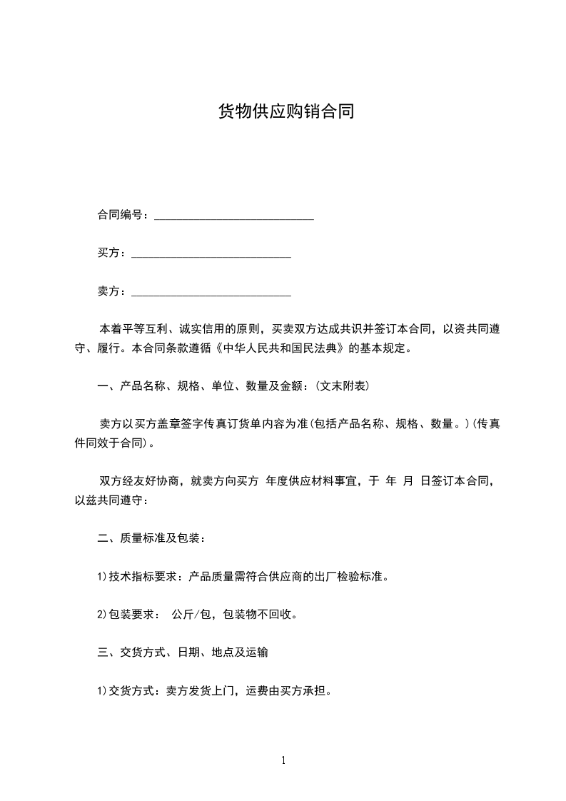 双方经友好协商,就卖方向买方 年度供应材料事宜,于 年 月 日签订本合同,以兹共同遵守: