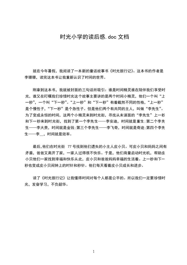 读了《时光旅行记》让我懂得时间对每个人都是公平的。所以我们一定要珍惜时光,发奋学习,不负韶华。