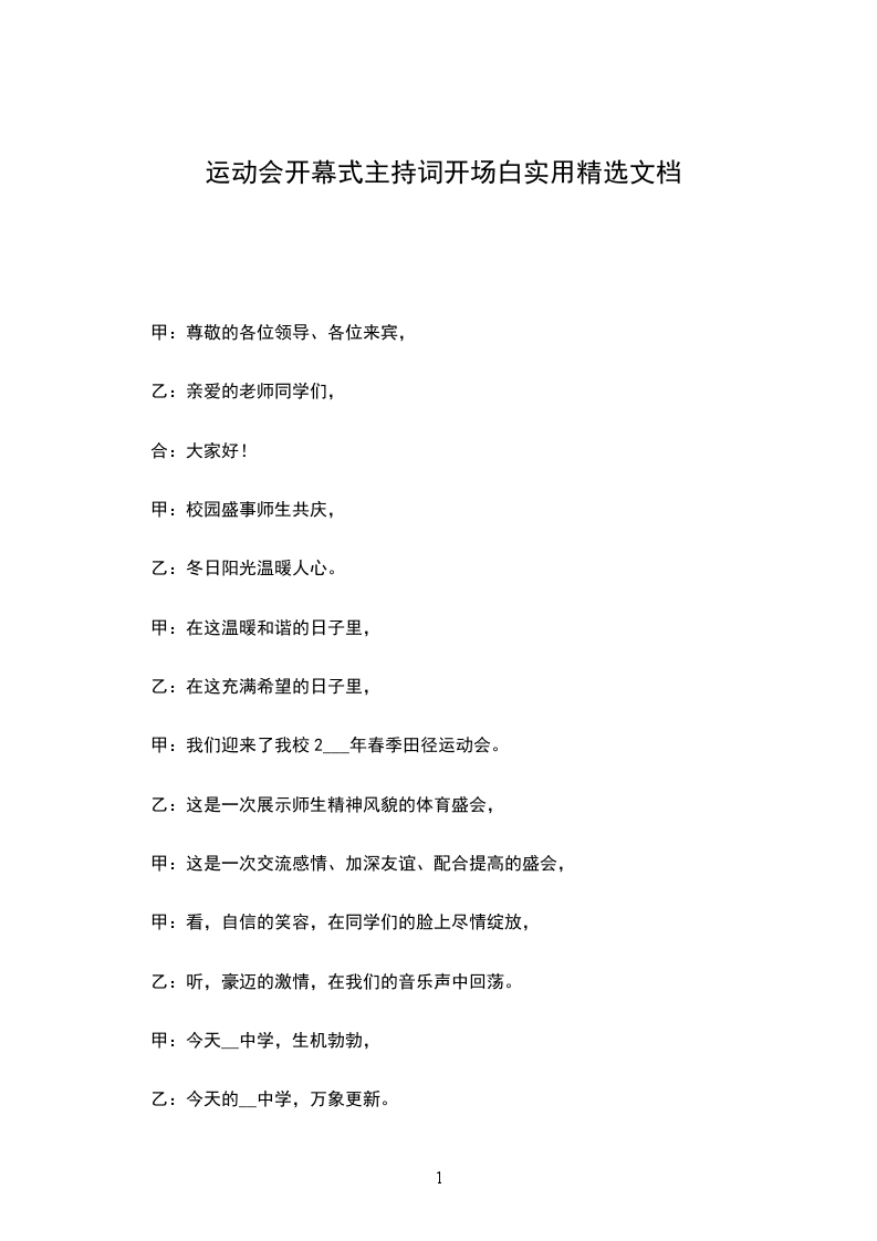 女:首先请学校__校长为运动会开幕式致辞并宣布运动会开幕;
