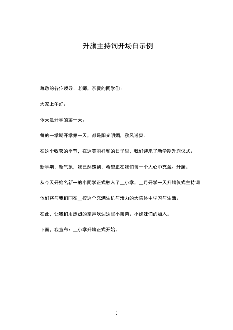 男:现在我宣布——__小学春季运动会开幕式现在开始!