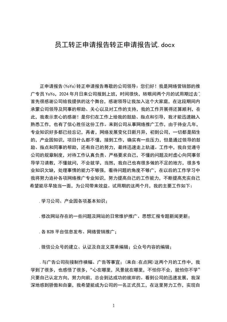时间总是过得这么快,一转眼一个月的试用期就过去。虽然我来到公司的时间并不长但是我也已经爱上了在这里的生活。在这一个月里面我认识了很多新朋友,也接触了很多以前自己从来没有接触过得东西。我希望自己能够在未来也能接着在这里工作下去,当然这需要领导做出决定,并不是我说了就算的。下面就这次试用期的一个月做出简略的总结,如果有不对的地方往领导见谅。