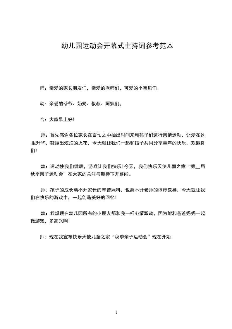 幼:运动使我们健康,游戏让我们快乐!今天,我们快乐天使儿童之家“第__届秋季亲子运动会”在大家的关注与期待下开幕啦。