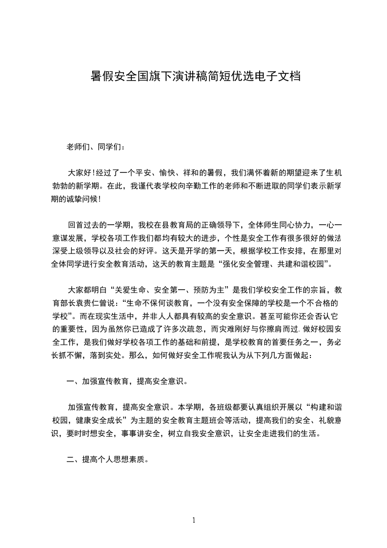 今天我讲话的主题是:树立安全意识,平安度过夏天。夏季已经到来,随之而来的一些安全隐患也出现在我们身边,下面我给同学们介绍一下夏天我们应注意的一些安全问题: