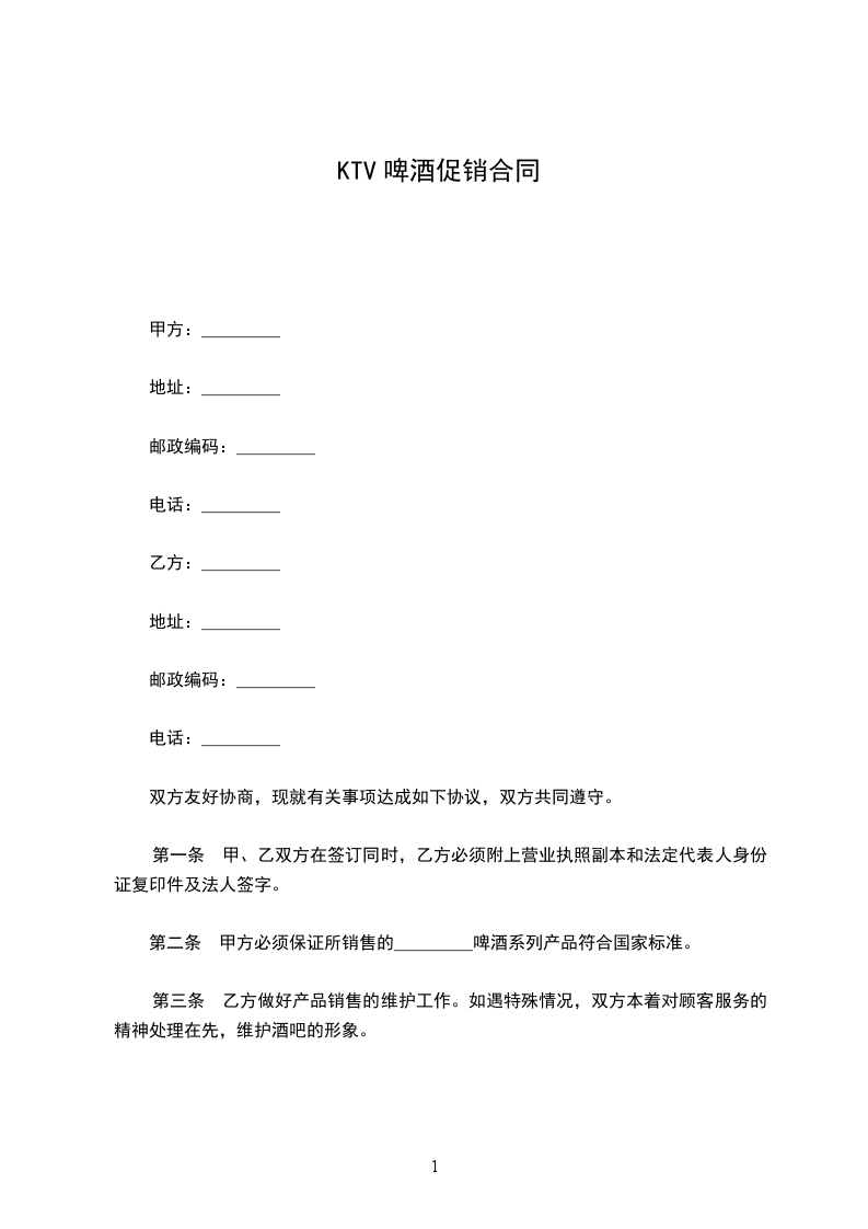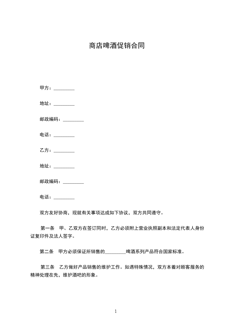 第六条 乙方营业场所_________酒吧从签订本协议之日起将停止其它啤酒的促销,并将不再进入新的啤酒品牌促销。
