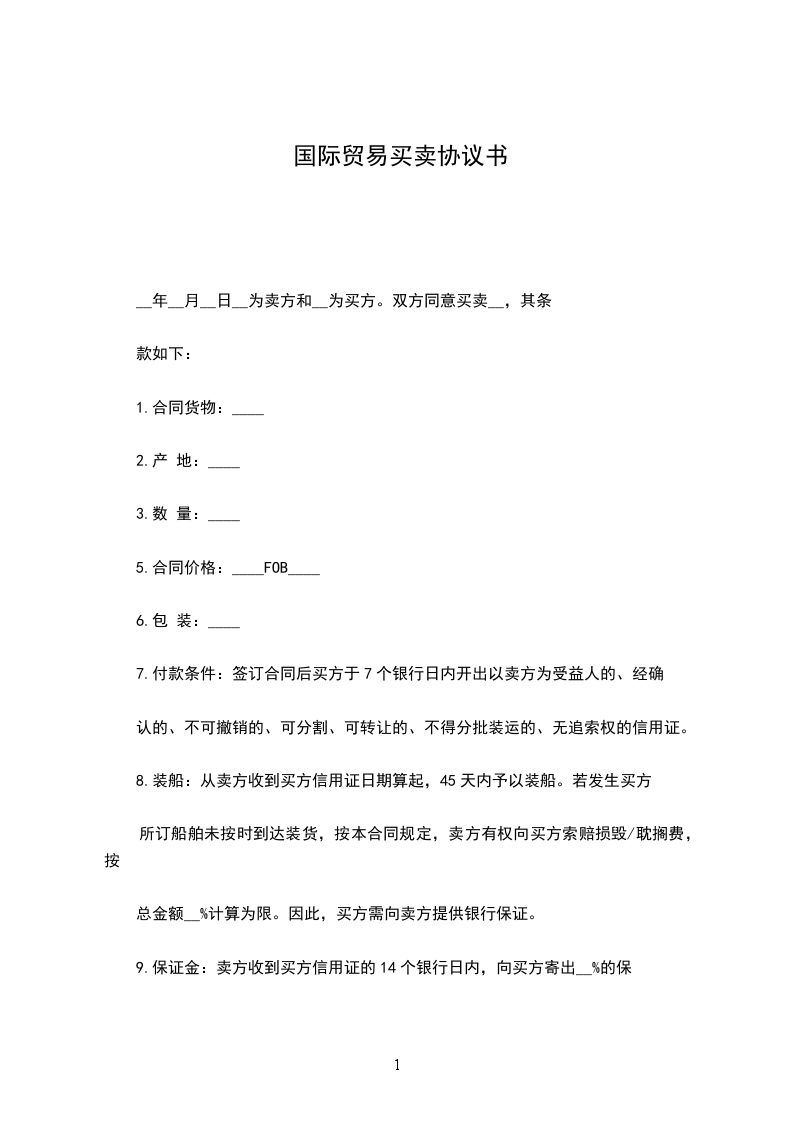 9.保证金:卖方收到买方信用证的14个银行日内,向买方寄出__%的保