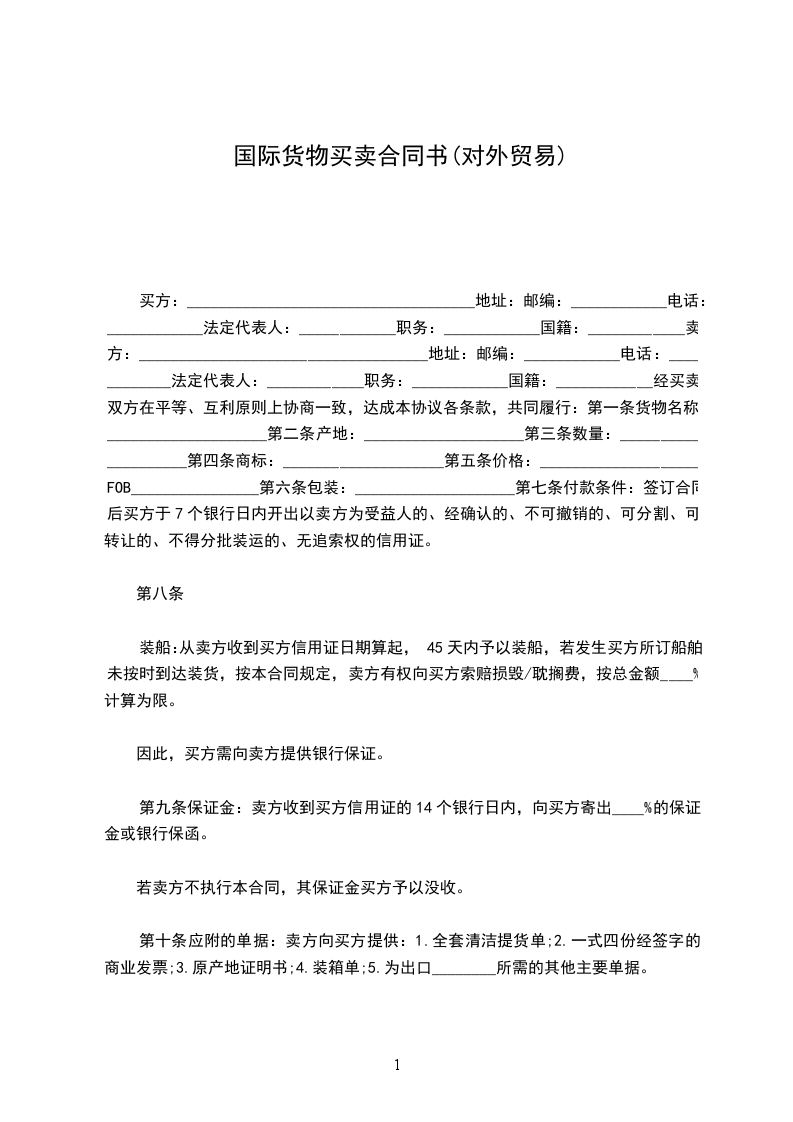 证金或银行保函。若卖方不执行合同,其保证金买方予以没收。