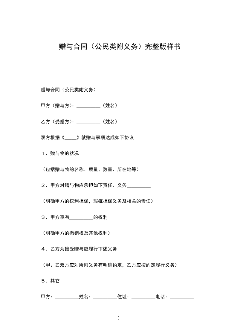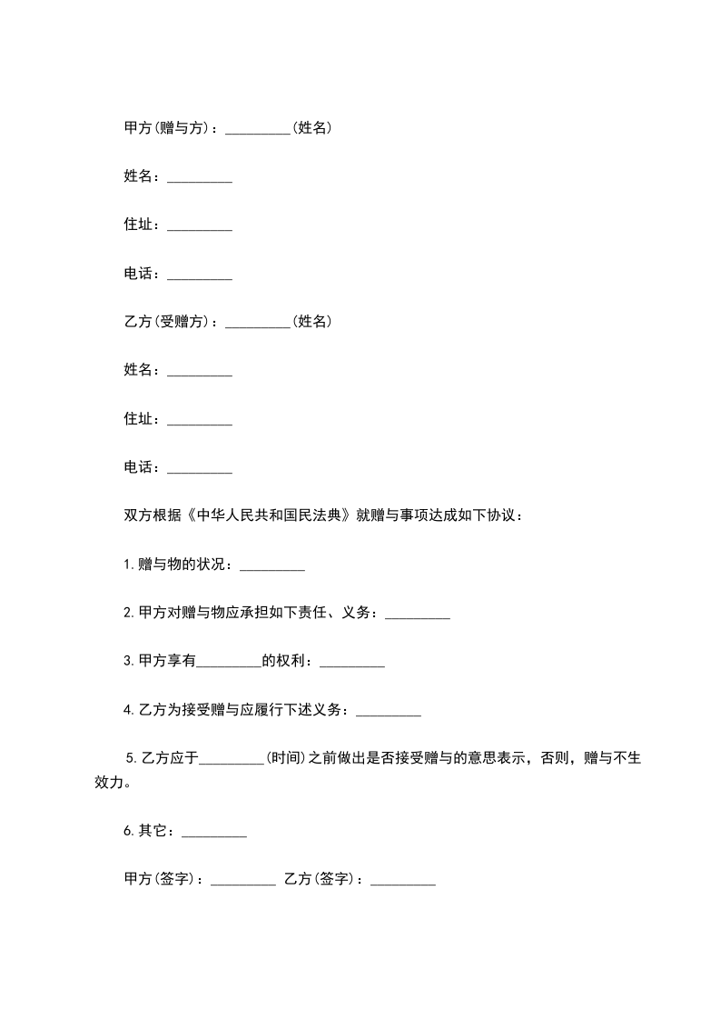 甲方(赠与方):_____(姓名)