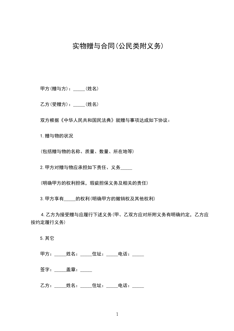 甲方:_____姓名:_____住址:_____电话:_____