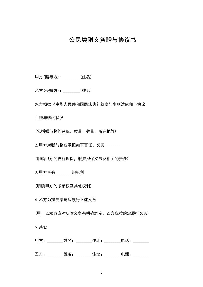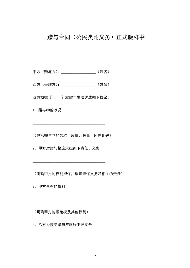 4.乙方为接受赠与应履行下述义务(甲、乙双方应对所附义务有明确约定,乙方应按约定履行义务)