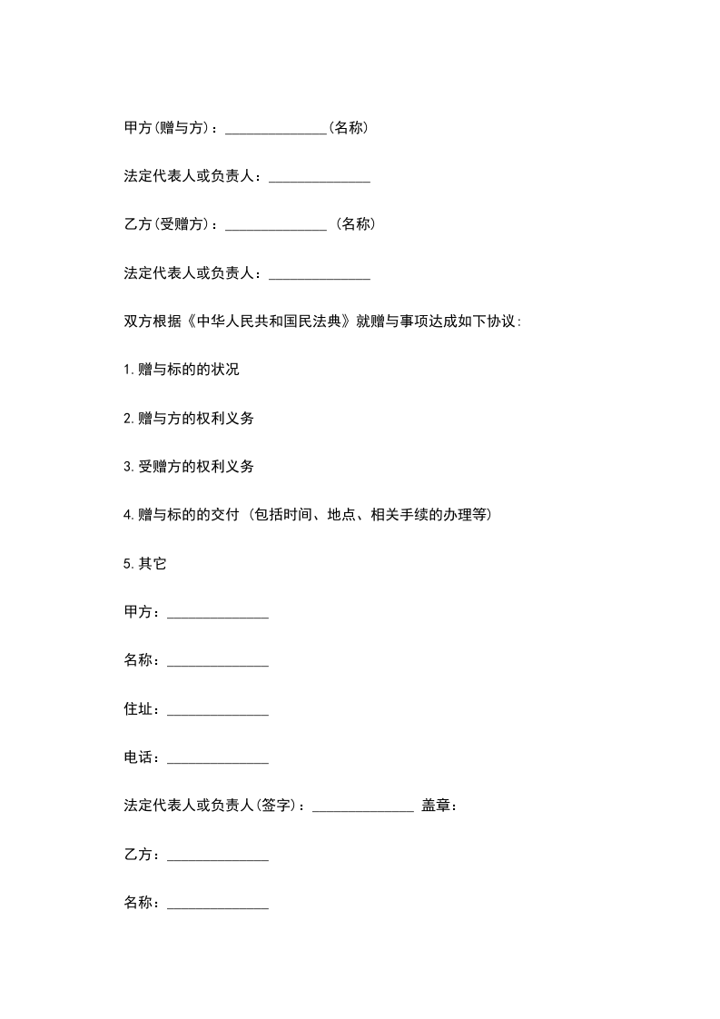 双方根据《中华人民共和国民法典》就赠与事项达成如下协议: