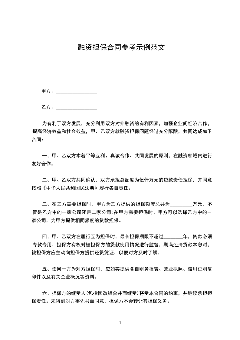 甲方需向融资,请求乙方为其融资提供担保,为明确双方的权利和义务,根据我国《中华人民共和国民法典》及相关法律、法规,经双方协商一致,特订立本合同,以便双方共同遵守。