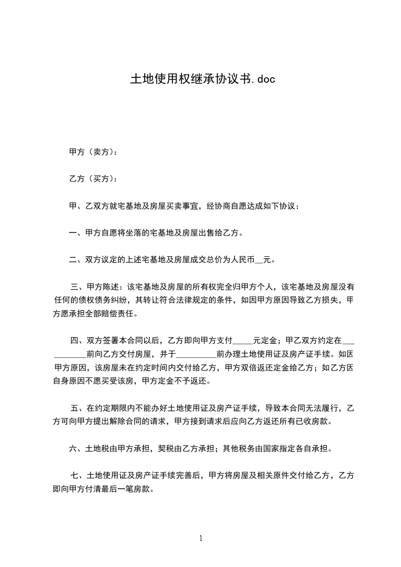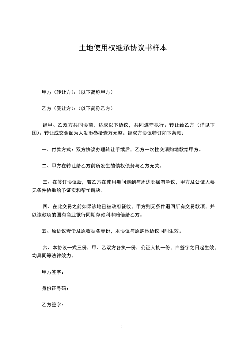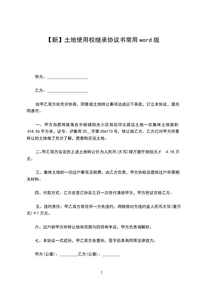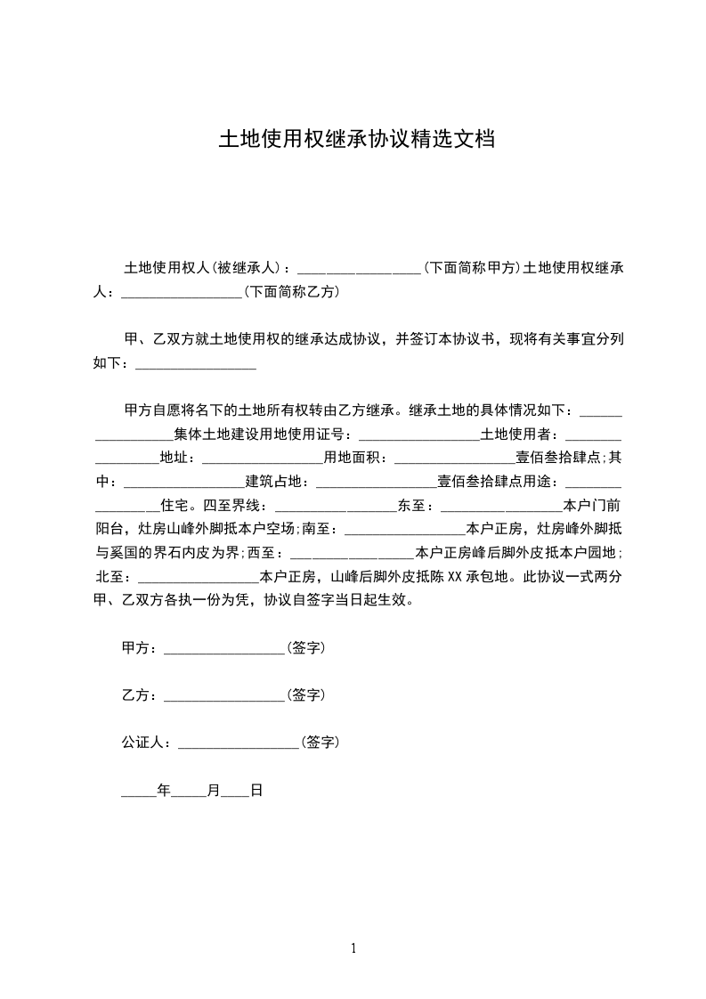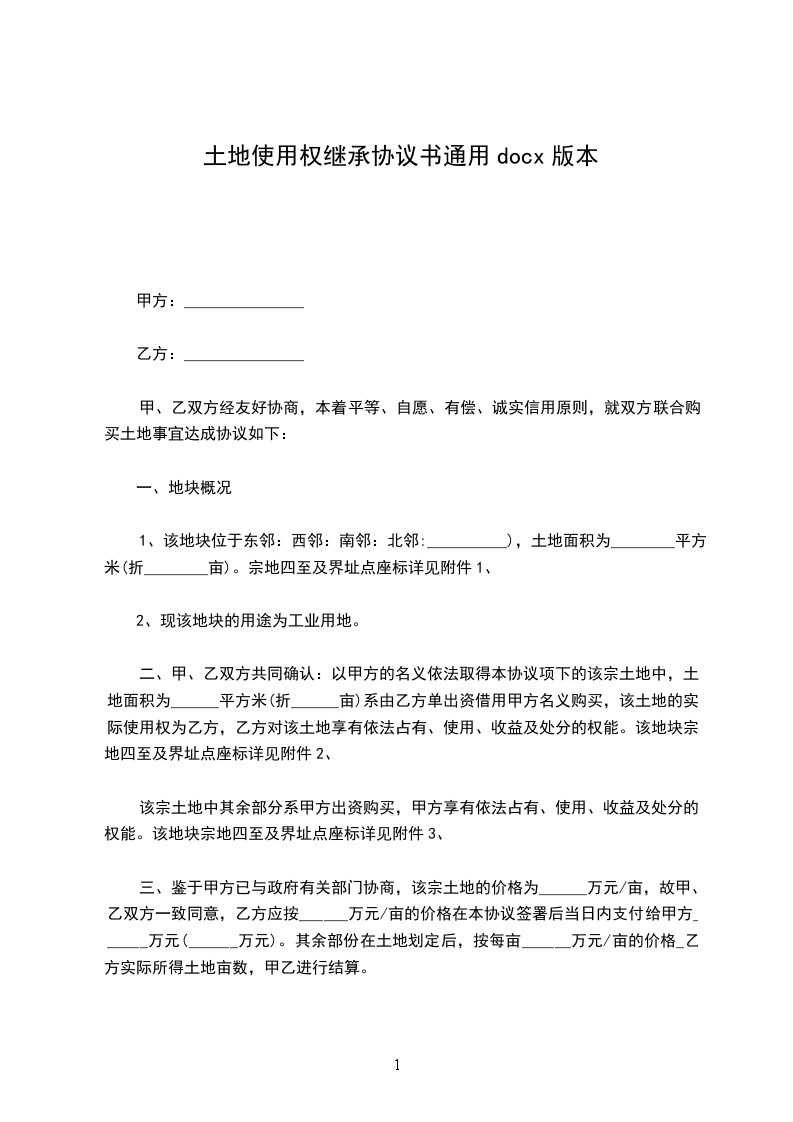 1、该地块位于东邻:西邻:南邻:北邻:__________),土地面积为________平方米(折________亩)。宗地四至及界址点座标详见附件1、