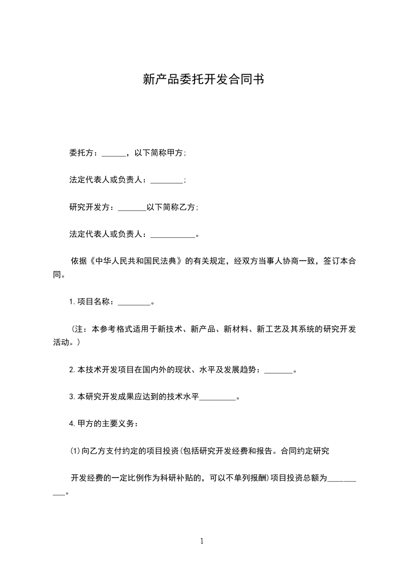 (注:本参考格式适用于新技术、新产品、新材料、新工艺及其系统的研究开发活动。)
