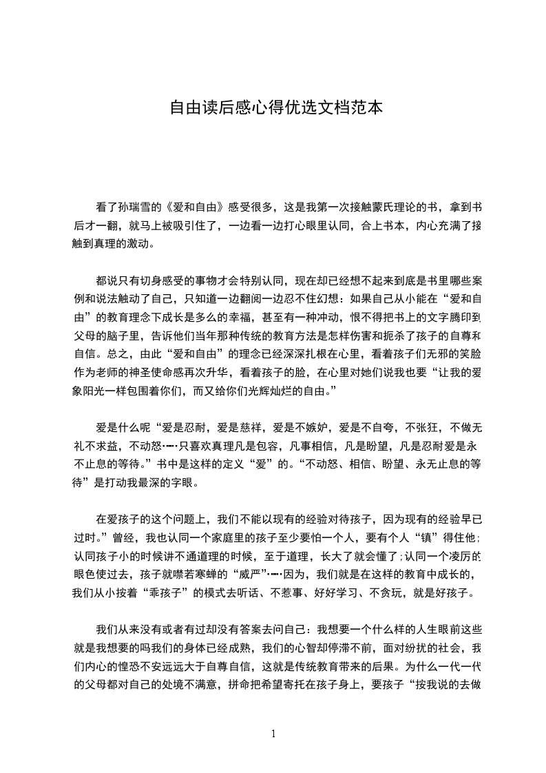 看了孙瑞雪的《爱和自由》感受很多,这是我第一次接触蒙氏理论的书,拿到书后才一翻,就马上被吸引住了,一边看一边打心眼里认同,合上书本,内心充满了接触到真理的激动。