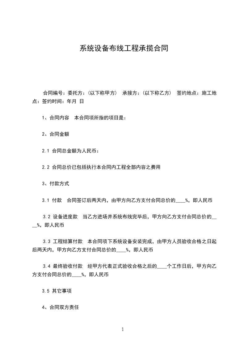 当乙方进场并系统布线完毕后,甲方向乙方支付合同总价的____%,即人民币 (rmb )。