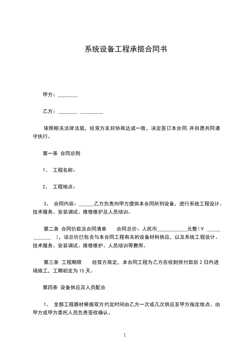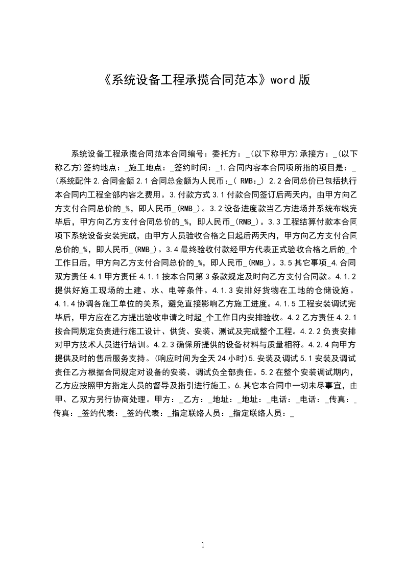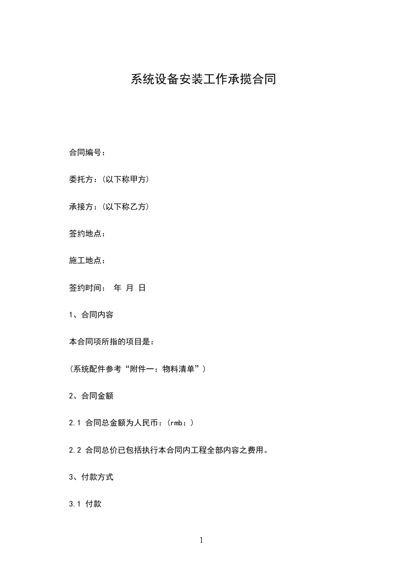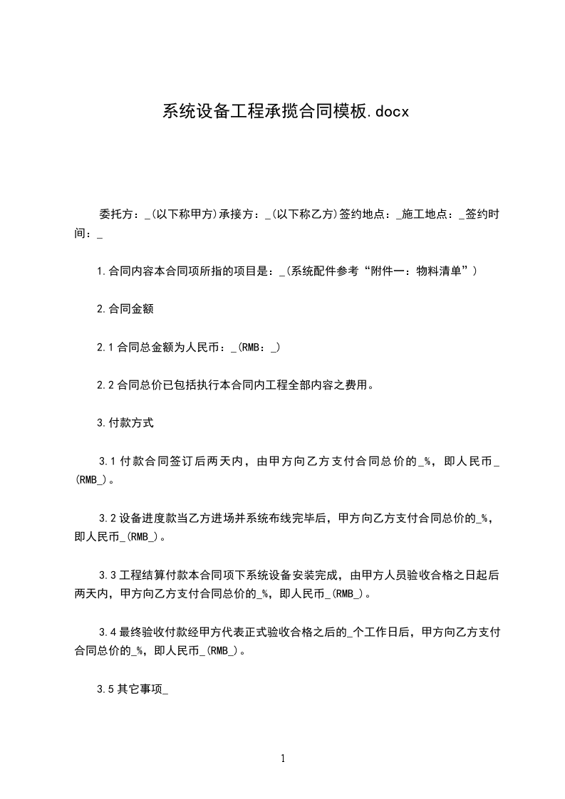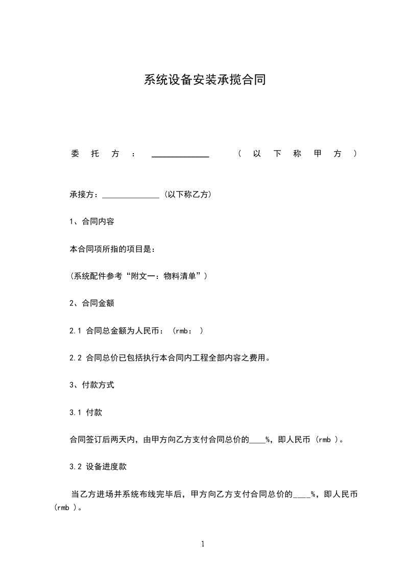本合同项下系统设备安装完成,由甲方人员验收合格之日起后两天内,甲方向乙方支付合同总价的____%,即人民币 (rmb )。