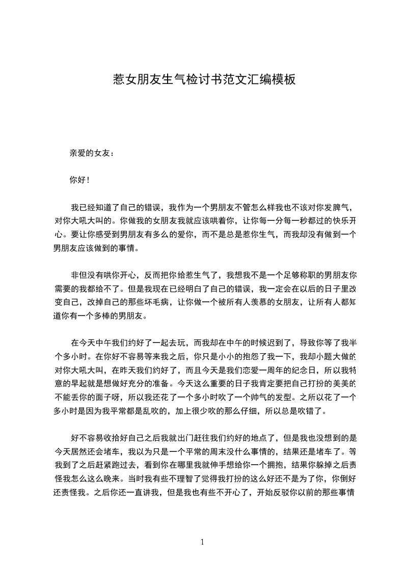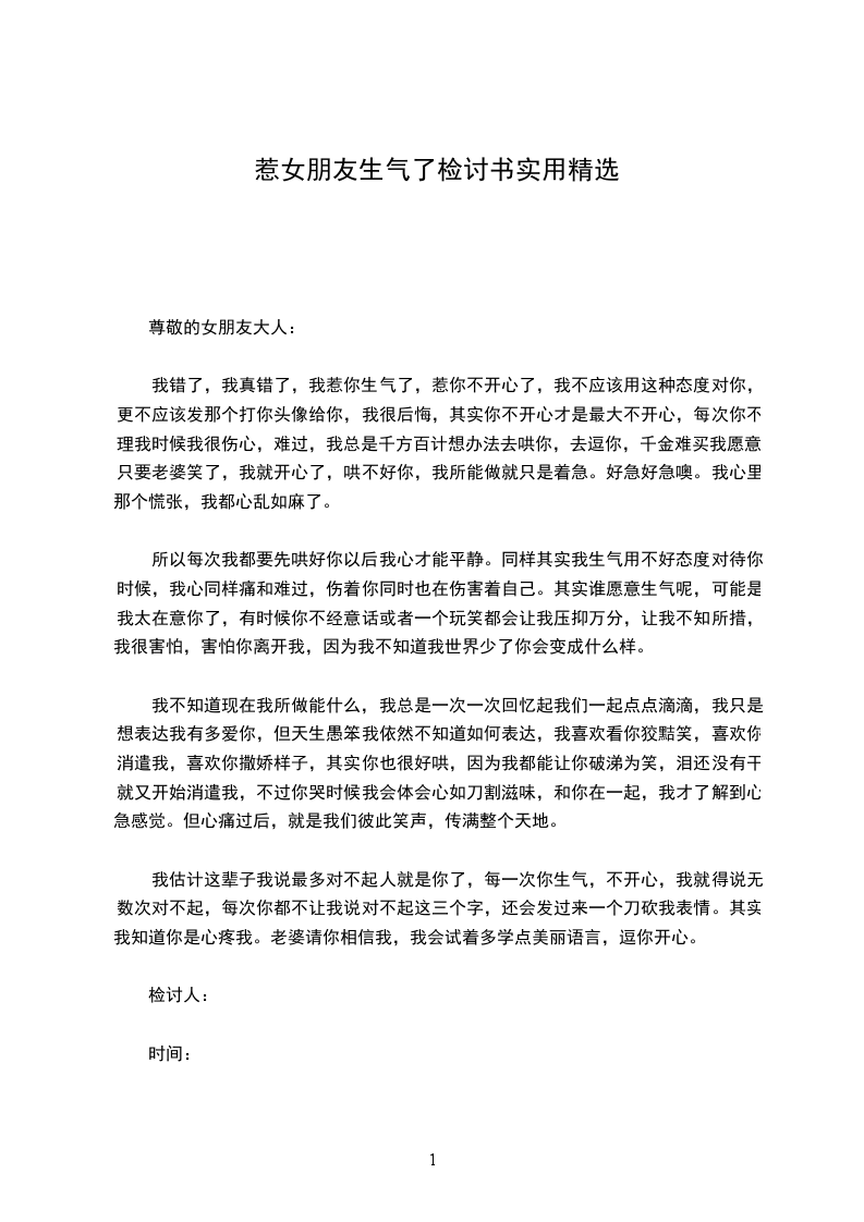 本人由于__号晚和___他们打游戏而不理你,害得老婆生气,事后虽然老婆大度的原谅了我,但我还是写下了这份检讨书。