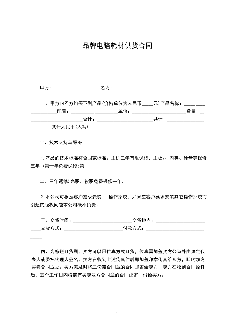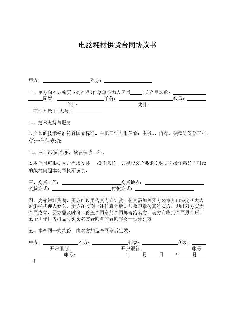 一、甲方向乙方购买下列产品(价格单位为人民币_____元)