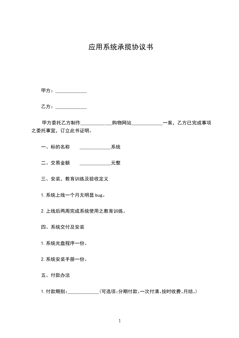 1.付款期别:_____________(可选项:分期付款、一次付清、按时收费、月结。)