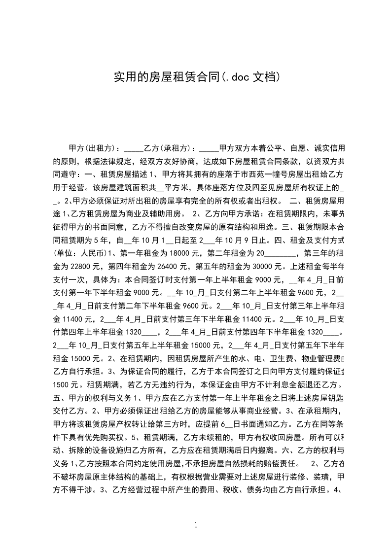 1.依照合同约定将房屋及设备交付乙方使用。未按约定提供房屋的,每逾期一日,须按月租金额的__________%向乙方支付违约金。
