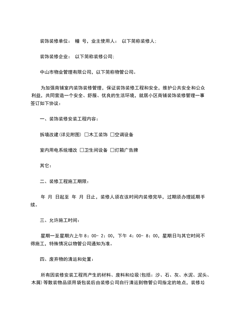 八、装修垃圾由乙方负责清运。清运前用袋装好放置在门洞一侧,日产日清。委托甲方清运时,实行有偿清运,有偿清运费由乙方按 元/吨支付。凡乱扔乱倒者,按有关规定予以处理。