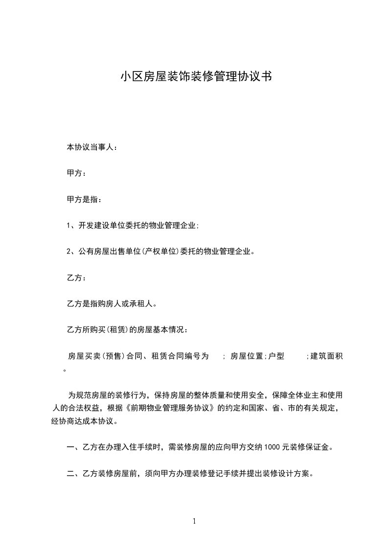 为规范房屋的装修行为,保持房屋的整体质量和使用安全,保障全体业主和使用人的合法权益,根据《前期物业管理服务协议》的约定和国家、省、市的有关规定,经协商达成本协议。