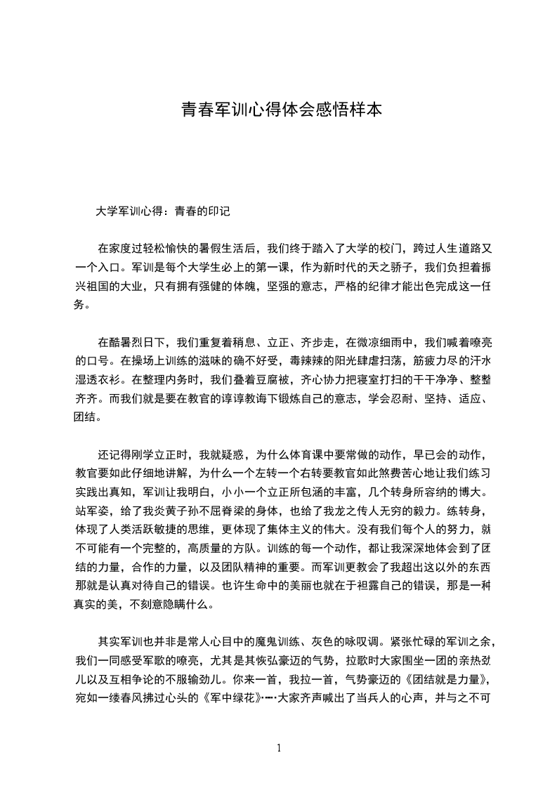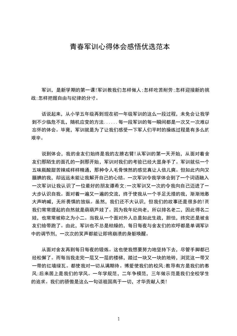 二零__年_月_日,是一个特别的日子,是我参加初中军训的第一天。“军训”对于我的理解,是一次锻炼的机会,是一种学习军人精神的尝许,也许军训还会很累。
